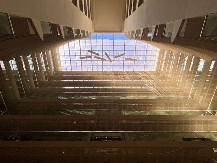 Our room was spacious, complete with free Wi-Fi and in-room coffee and tea facilities with plenty of clothing storage and excellent, well-lighted bathroom facilities. Facing west, we enjoyed spectacular sunsets over the city from our bedroom window.