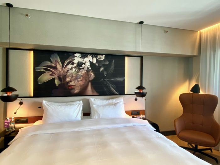 The complex, in effect, is divided in two parts, the Radisson Blu with 462 rooms and suites with a contemporary design at one end and the Park Inn at the other offering longer term rental apartments.