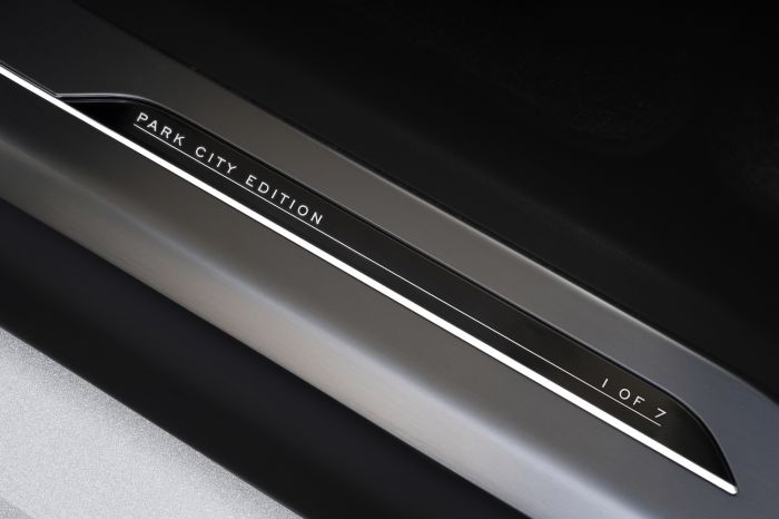 Deployable side steps give way to a serene interior adorned with: “SV Bespoke” to Duo Tone Ebony/Light Cloud Suedecloth headlining; Light Cloud/Ebony perforated Semi-Aniline leather seats with Light Cloud/Ebony interior; and “SV Bespoke” satin forged carbon fiber trim finisher. Unique treadplates and trim etched with “Park City Edition” complete the distinctive design.