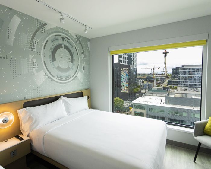 Astra Hotel guest room. Photo courtesy of Astra Hotel Seattle
