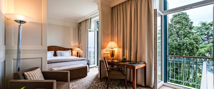 The hotel offers 181 spacious and well-appointed accommodations. The rooms and suites are exceptionally large with high ceilings, well-crafted interiors, marble bathrooms with rain showers and tubs, and high-tech electronics. Accommodations in the heritage palace offer classic décor and exquisite views of the sea from juliete balconies. Beyond that, guests have the rare opportunity to stay in a palace that is such an important part of Slovenian history.