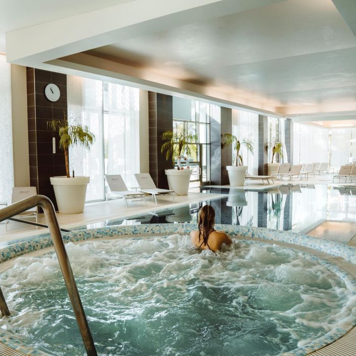 Beyond relaxing on the hotel’s private beach area, the temptation to enjoy the water at the hotel is hard to resist. Indoors there’s a sleek saltwater pool along with a hot tub as well as Finnish, Turkish, or Infrared saunas. The hotel’s most posh area is the pool scene with Balinese daybeds, chaise lounges, and an expansive pool with hotel guests being waited on by their attentive staff. Beyond the pool, the Rose Spa is in the hotel’s modern wing and offers a range of treatments such as their Himalayan salt massage or the Secret of the Rose Ritual.