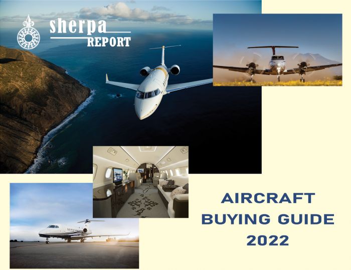 Often, ideas for informative books begin with conference data; numbers that CEOs discuss, then move on. This occurrence is generally what happened with the new book, recently published (October 2022) entitled Aircraft Buying Guide 2022. It was published by SherpaReport, a virtual publication online since 2006, that provides valuable information and analysis to UHNW clients, allowing for more informed decision-making in purchasing of private aircraft, or investing in jet cards, or buying fractional, charter or full ownership of jets, yachts, and other travel options. Because it is one-of-a-kind, Sherpa’s business and consumer membership base has grown exponentially over the years, and with the publication of this book, will likely grow additionally.