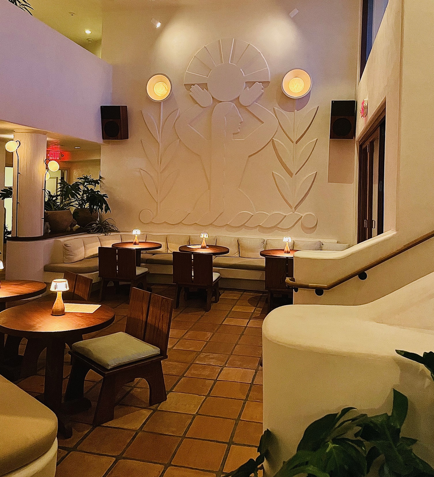Beachside sand, terracotta clay, and seaside green color tones offer a soothing sanctuary during the day for guests to sip coffee while working on their laptop. Later in the day, guests approach the small bar top to order a craft cocktail, glass of wine or beer to enjoy with a cheese or charcuterie board.