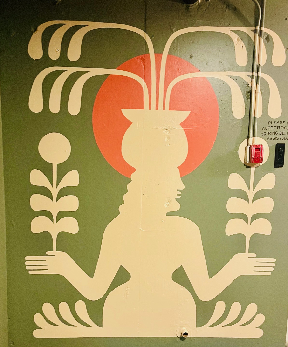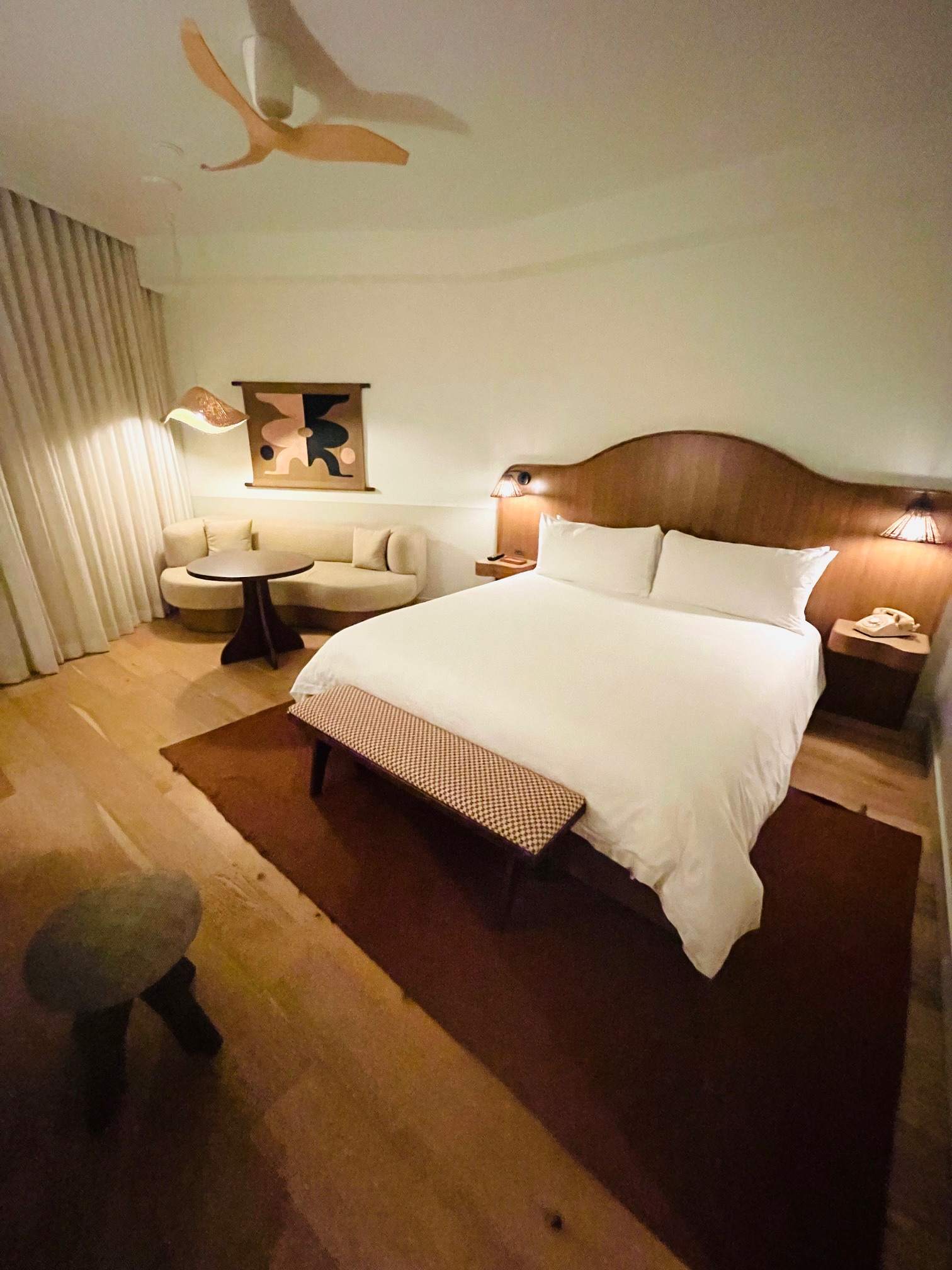 Starting in the parking structure and throughout the hotel, art is everywhere one looks. According to Grossman, “LAND was enlisted to make the entire hotel one large immersive art experience – from the lobby mural, to the hand-painted canvas tapestries in select guest rooms, to the custom screen-printed and numbered framed original artworks. Every aspect of Casa Loma, including the handcrafted wooden furniture and its vintage lobby sound system, feels organic to the space and its surroundings, but precise in its placement and design.’