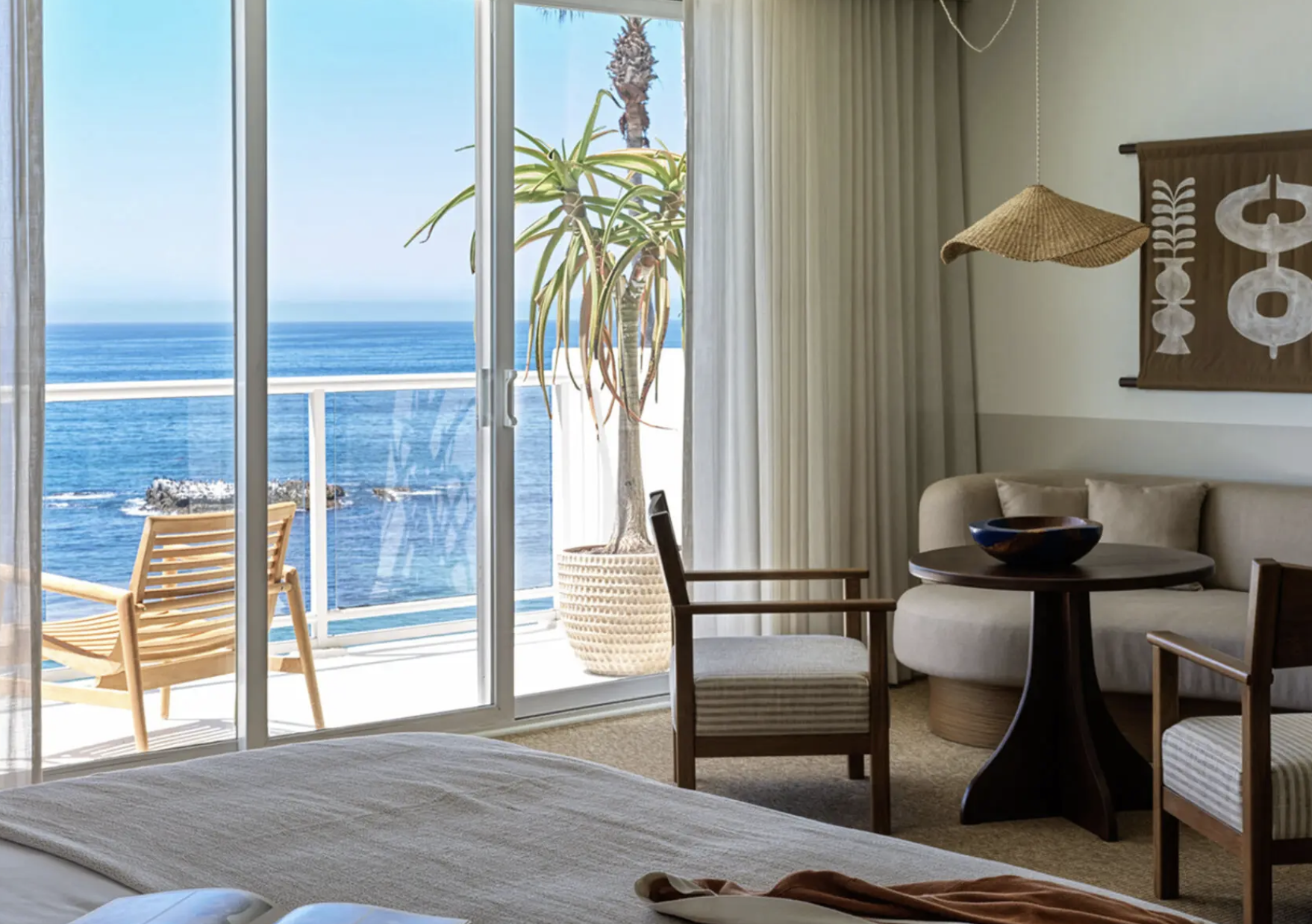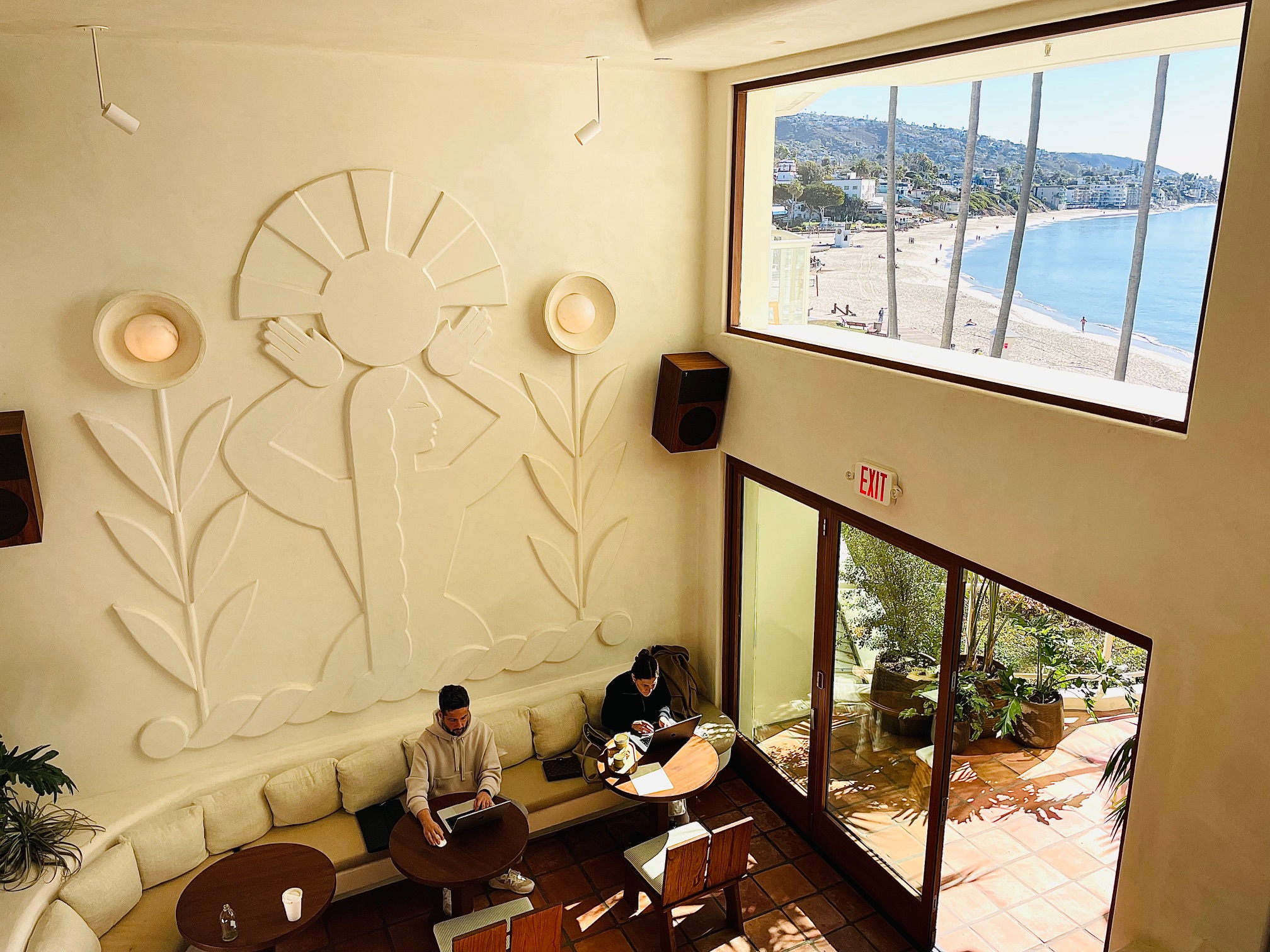 Staying at Casa Loma Beach Hotel in Laguna Beach feels a bit like being in Tulum, Mexico. The white plaster walls, chunky wood furniture, soaring ceiling, and new bar in the reception lobby, lead out to exquisite Pacific ocean views and Main Beach beyond.