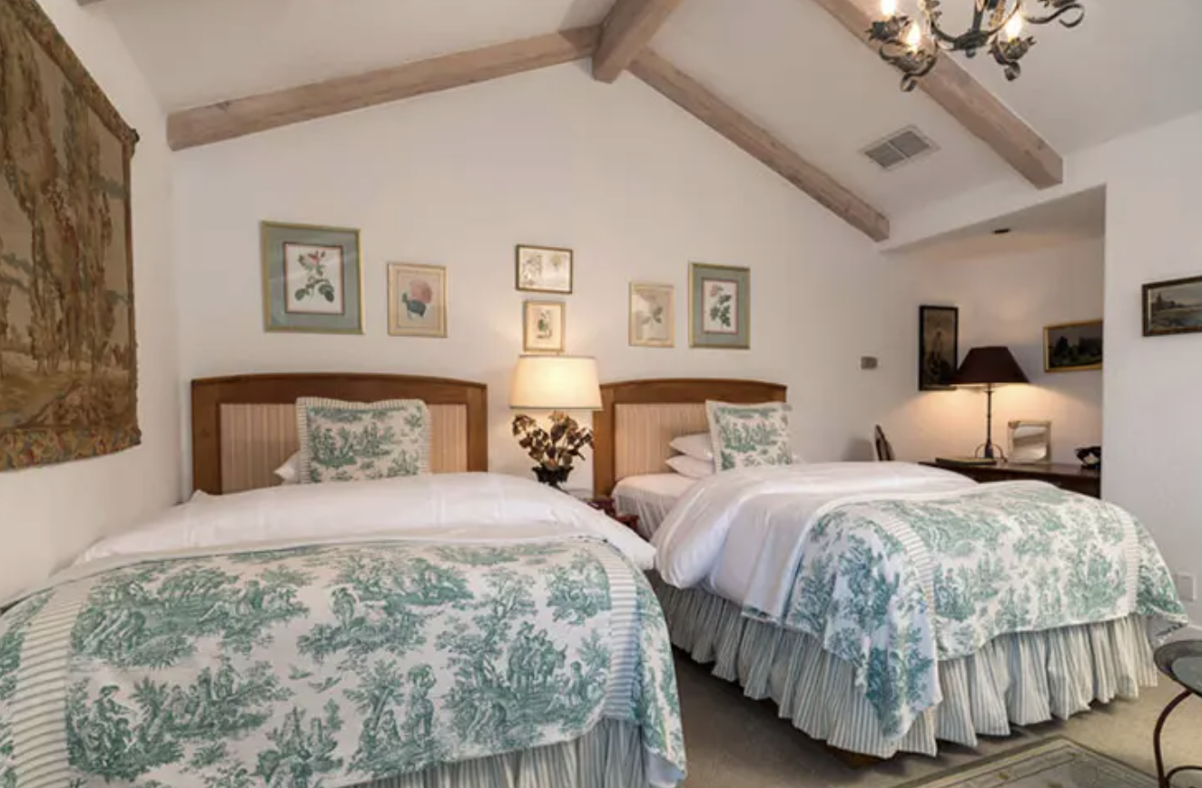 The Ciboulette Room evokes the charm and beauty of the French countryside. Surrounded by vintage botanical sketches and a European tapestry, there is the convenience of two double beds and a writing nook with a French provincial desk.