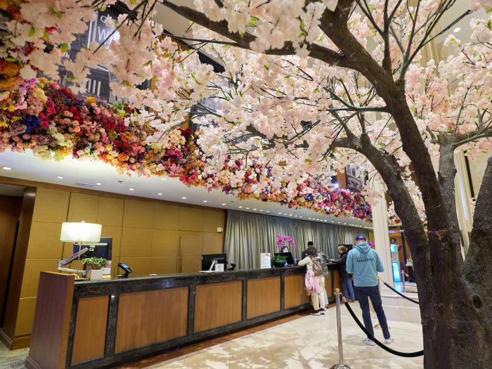 Check-in at The Westin St. Francis lobby is under a canopy of cherry blossoms