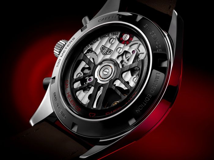 Inside, TAG Heuer places its excellent Calibre Heuer 02, which boasts eighty hours of power reserve and a (red-tinted) column-wheel. Framing the movement is a special engraving that extols the limited nature of this new watch, which TAG Heuer is offering as a limited edition of 600 pieces. Price: $6,750.