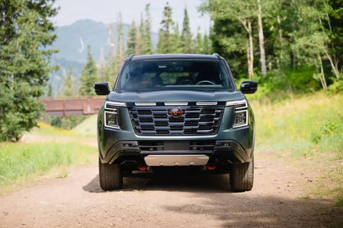 The entire fleet features eight exterior colors, including two-tone options. As for the interior, buyers can pick from seven chromatic combinations. Press materials indicate that only the 2025 Armada PRO-4X comes with Charcoal upholstery and Lava Orange detailing.