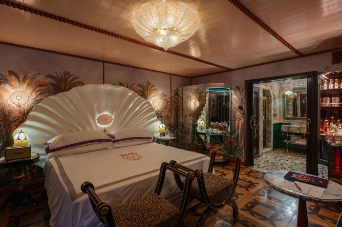 The Baby Grand is CH Projects’ bold new hotel across from the legendary Hotel Del Coronado. With just 31 rooms and design by Brooklyn’s Post Company, this $17 million boutique escape reimagines Southern California’s coastal charm through a surreal, maximalist lens. Expect immersive spaces layered with vintage tapestries, sculptural decor, and Kubrickian-style minibar displays. Three standout dining concepts include Night Hawk, a modern Greek restaurant set in a lush, jungle-like entryway; Fallen Empire, a moody oyster and champagne bar; and a mysterious omakase spot, all contributing to a dreamlike collision of nostalgia and futurism.