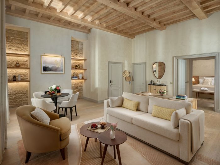 Housed in a meticulously restored 500-year-old palazzo, Romègas is set to be one of Valletta’s first true luxury boutique hotels. The 23 individually designed rooms and suites feature original Maltese balconies, hand-carved stone facades, terrazzo floors, and cladded marble bathrooms. Located in the heart of Malta’s capital, guests can enjoy a rooftop pool and bar with panoramic views over Valletta’s sepia-toned streets, cathedral domes, and Manoel Island. Romègas celebrates Maltese culture through commissioned works by local artists and refined design and is steps away from MICAS and UNESCO-listed sites.