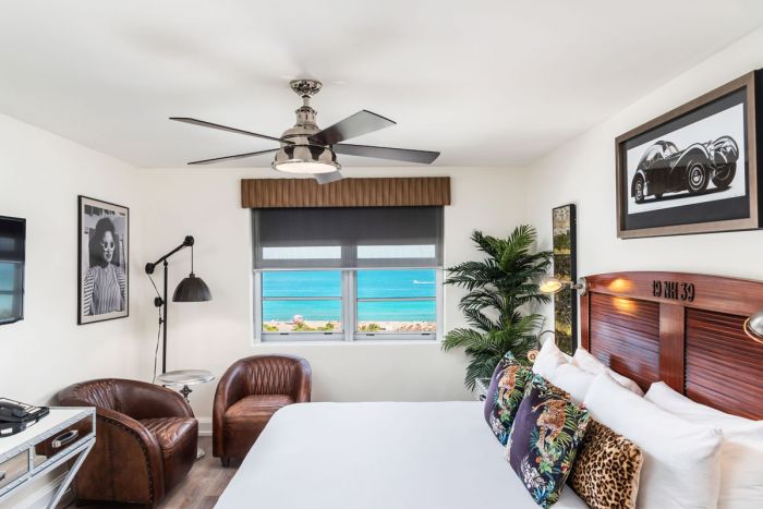 SM: Ranging from the city vie rooms to our penthouse suite, guests can find roomy accommodations and relaxed luxe amenities with stunning views of the blue ocean and our infinity pool. Favorite features in our upper room categories include radios, slippers and a robe beginning in our cabana rooms and suites; balconies in our Cabana rooms; bold, fun murals in our Artist Collection Suites designed by Elizabeth Fatone; and the tri-level space of our Penthouse Suite.