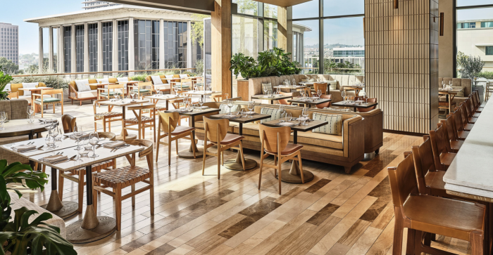 Overlooking the iconic Disney concert hall, San Laurel takes visitors on a tour of Spain’s creative flavors with California’s fresh, local ingredients. Breakfast and dinner menus are available highlighting a fresh juice bar, avocado eggs benedict, bone-in wagyu ribeye with potato, grilled romaine with manchego espuma salad, and roasted celeriac carpaccio.