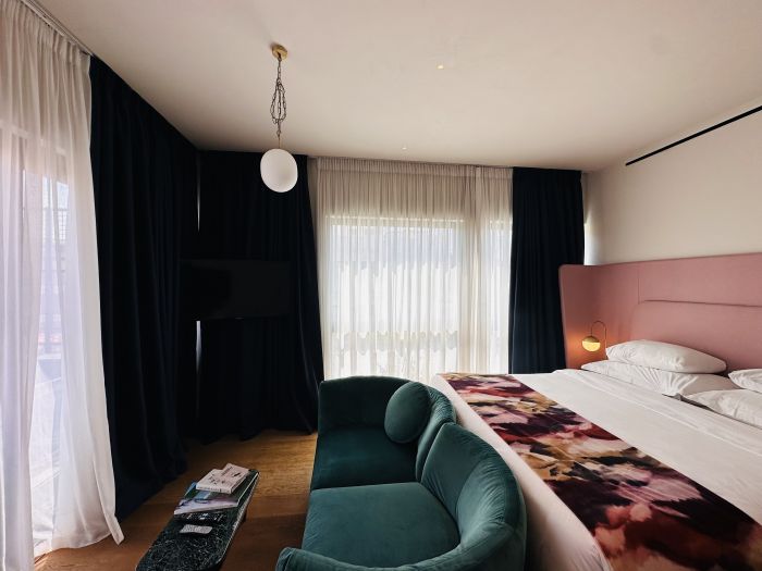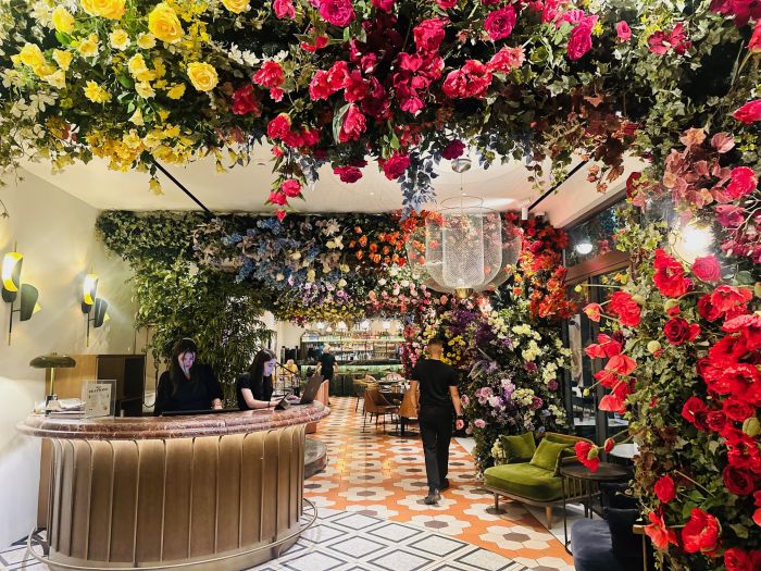 From the moment you enter the hotel, a former police station, the hotel simply wows! From the floral Instagram-worthy entryway to the flower-filled rooftop garden, the hotel creates a vibrant and immersive atmosphere that enhances the overall guest experience. The Gatsby Hotel is truly a visual masterpiece, with a design that pays homage to the glamour of the 1920s while embracing modern luxury. The Art Deco influence is evident in every corner of the hotel, from the bold geometric patterns and rich color palettes to the elegant use of gold, marble, and velvet. The lobby is a statement of sophistication, with its high ceilings, grand chandeliers, and striking black-and-white floor tiles, creating a space that is both inviting and awe-inspiring.