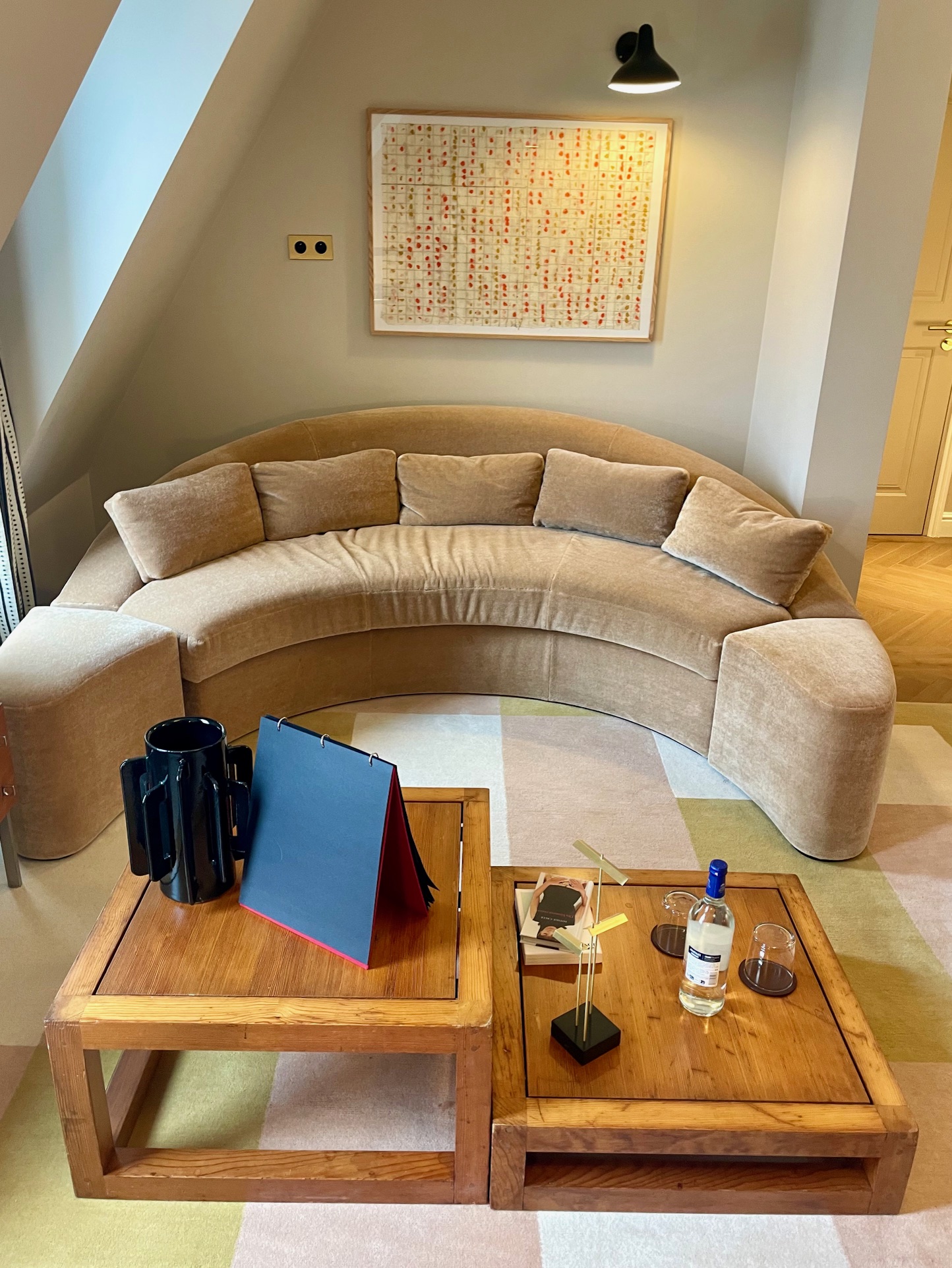 Maison LELEU offers space and cosmology as the starting point of the design of the Moon sofa in the suite. Two mobile parts can be used as complementary seats or side tables.