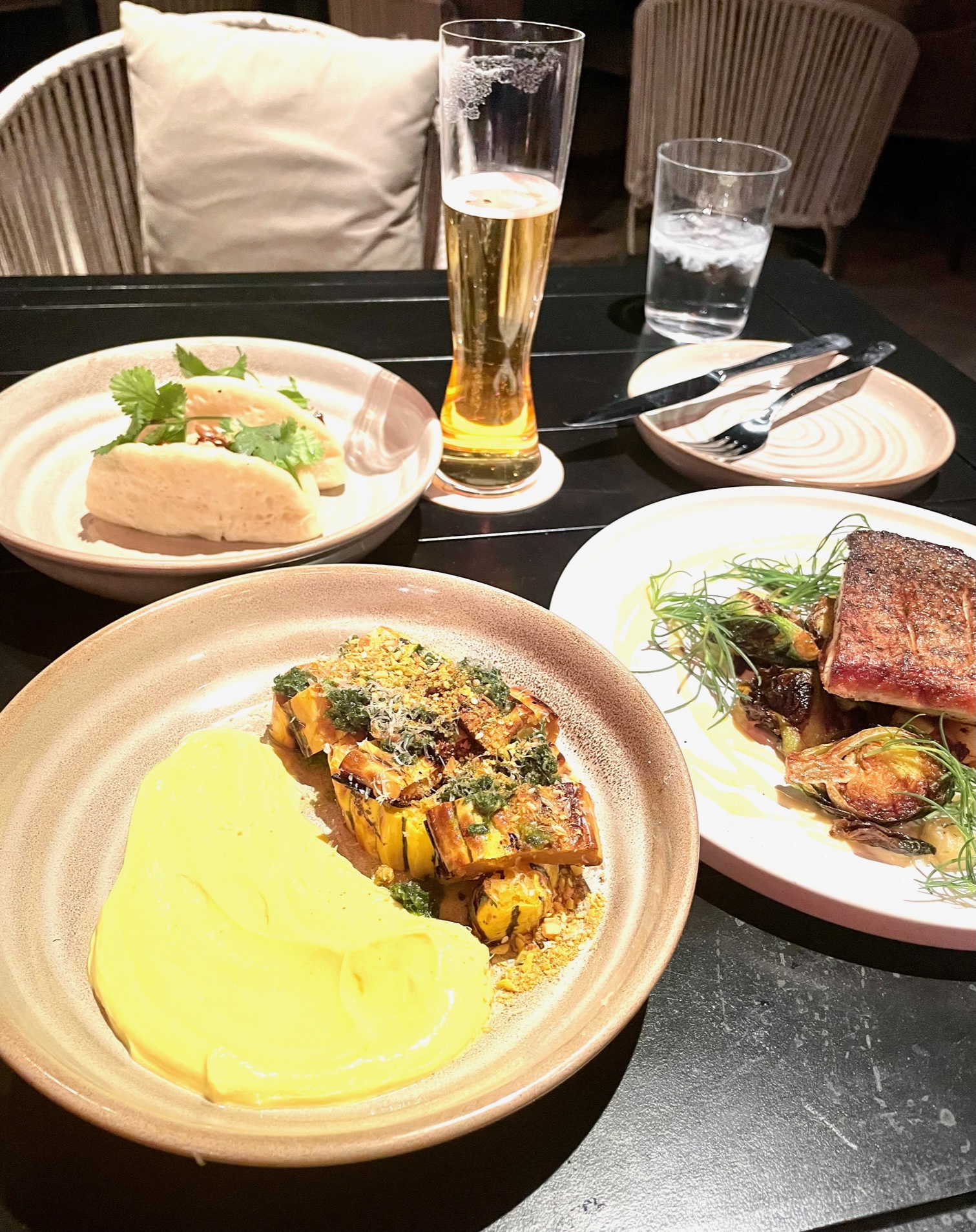 Specialty items on the dinner menu include oxtail bao buns with kimchi, fresh grilled local fish, mussels in a red curry coconut broth with sourdough bread, and strawberry hand pies made with Harry’s berries strawberries and a scoop of McConnell’s vanilla bean ice cream.