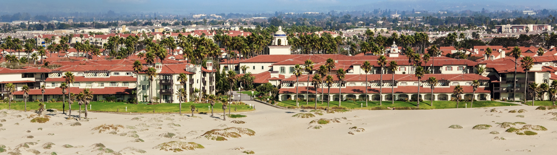 Walking into the light-filled large lobby, guests will learn about Oxnard sugar mogul Henry Oxnard. Other stories include strawberries growing in nearby fields with complimentary glasses of strawberry lemonade, and decor in the colors of sugary sand dunes and the inviting ocean just steps from the resort.