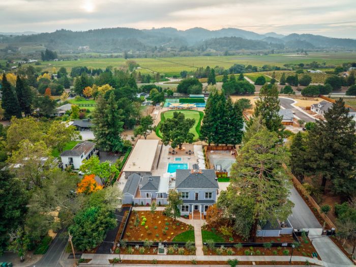 With its 11 sumptuously appointed rooms (seven of which are located in the stunningly remodeled main building and four of which line the putting green) and its pool adjacent ‘Pavilion,’ the resort is an ideal spot for small group gatherings. Spend the day at Mayacama, and return for afternoon wine and appetizers, enjoyed within the Pavilion’s fireplace adjacent cushy club chairs. Plan a pickleball tournament where bystanders can watch the action from the large, trellised patio. Hire The Ruse’s dedicated chef to make and serve dinner, or simply drive four minutes (or walk) to charming Healdsburg Plaza where Chef Dustin Valette’s three restaurants serve as the town’s communal living rooms: Valette, The Matheson, or Roof 106.