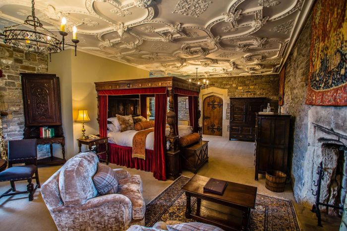 There are 27 uniquely designed guest rooms located in the castle, across the courtyard as well as the gatehouse. All of which are plush, lavish, and opulent. The castle’s bedrooms are full of character with exquisite period artwork and silk wall hangings, crystal chandeliers, fireplaces, stone mullion windows, and cozy window seats that overlook the castle’s gardens. The decadent chambers exude Tudor style with tasteful period furnishings, English heritage fabrics, and four poster beds with fine bed linens. Bathrooms are exquisite as well with clawfoot or rolltop baths, walk-in showers, fluffy robes and slippers, and toiletries courtesy of Molton Brown. The amenities don’t stop there with fresh orchids, a complimentary decanter of sloe gin and chocolates, and sweet treats each evening at turn down.
