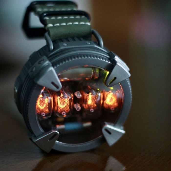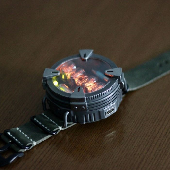 The Dosimeter Nixie is presented on a Nato-style strap and retails for $2,489. For more information about this watch follow this link: https://titantimepiece.com/products/nixie-watch-titanium-watch-nixie-watch-with-γ-β-and-x-ray-radiation-dosimeter-1