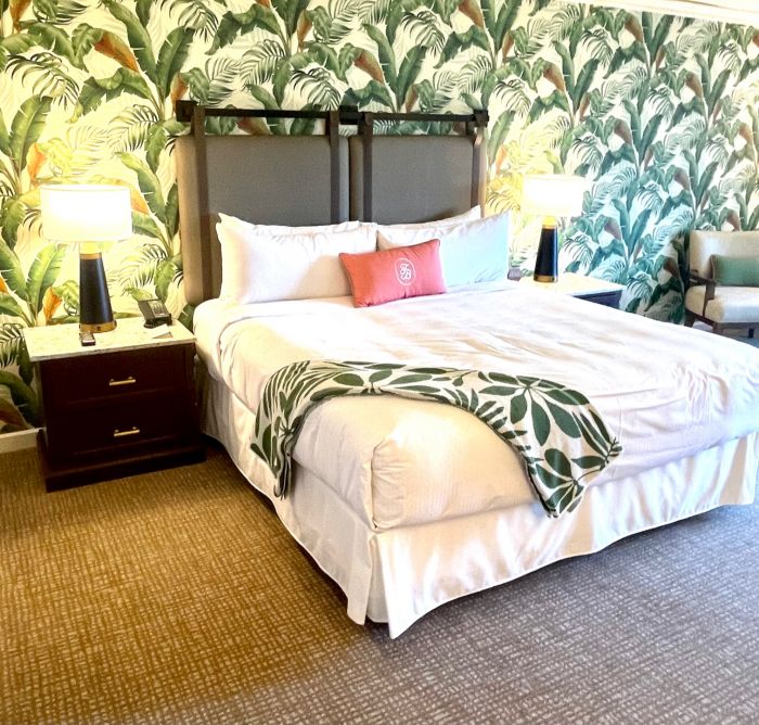 Luxury suites include The Tiger Suite displaying Tommy Bahama’s Los Altos collection. This theme draws inspiration from cultural and design influences around the world. Those staying in the modern Palm Suite will appreciate the traditional charm of lush, tropical heritage-inspired wallpaper, and leather-wrapped carved bamboo and rattan detailing from the Twin Palms collection.