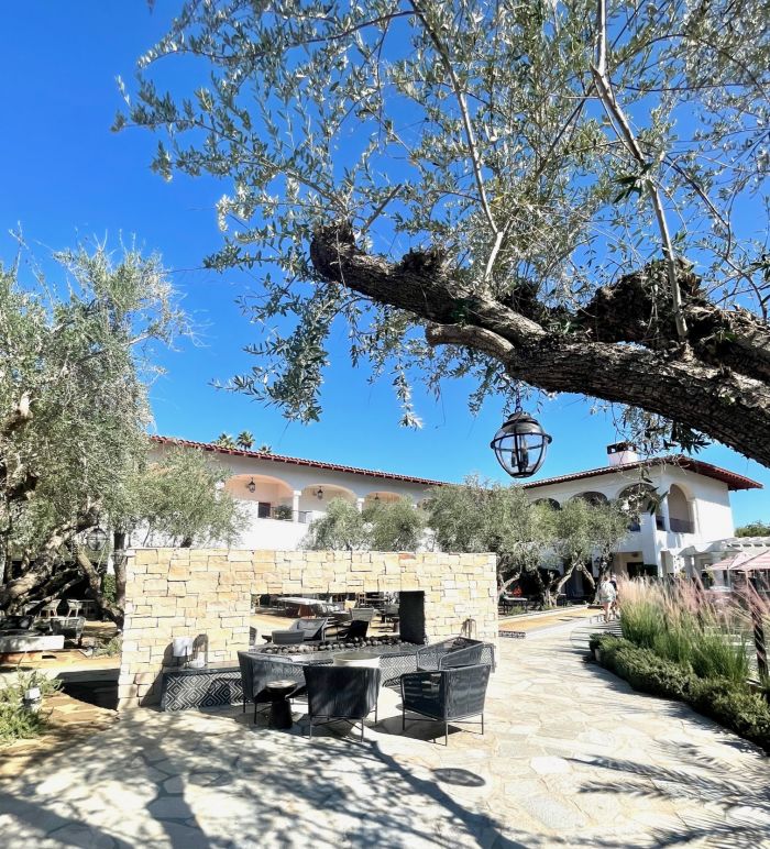 Woven into 11 expansive acres are garden pathways winding through ancient olive trees, fragrant citrus groves and seasonal flowers. The olive grove is complete with hanging lanterns and fire pits. This is an ideal spot to sit with a tropical cocktail or glass of wine among a relaxing atmosphere.