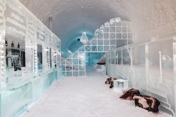 A landmark since 1989, ICEHOTEL is the world’s first and largest hotel built out of snow and ice offering year-long ice accommodations as well as the seasonal ICEHOTEL Winter (December-April). Starting in December each year, the empty space on the frozen Tore River bank turns into a magnificent hotel made of ice and snow with 50-55 seasonal rooms. Whether staying in a standard ice room to more elegant art suites, the spacious (and cold) rooms change every year with brand new ice-art, bringing a one-of-a-kind version of the Icehotel. Starting in November and taking six-to-eight weeks to build, the property comes to light (albeit in the darkness of winter) presenting memorable accommodations not seen elsewhere. And if staying in a frozen room wasn’t enough, along with the meticulously crafted ice bar, guests can book a night snowmobile tour on the frozen Torne River searching for the Northern Lights.