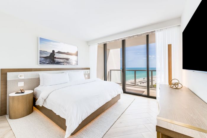 Each of the accommodation options are thoughtfully designed as urban seaside retreats. You’ll find beach house style millwork, natural oak finishes, a soothing palette of textures and charming seaside inspired accents highlighted by corals and tranquil teals. The resort incorporates these and other thoughtful elements to create a tranquil and relaxing atmosphere for its guests. This includes selected music playlists and beach-inspired artwork. The hotel also implemented new technical features to its guest rooms following its $30 million renovation. Guests can now take advantage of circadian lighting. with three preset mood modes, and sand gradient blackouts if they want to block out the Miami sun.