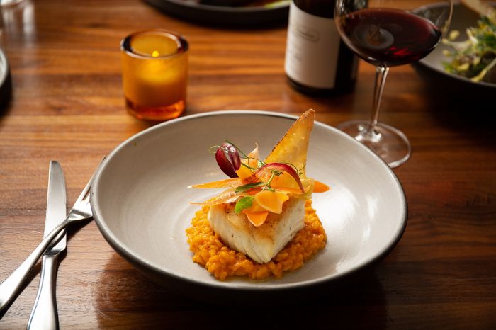 Ethan Stonewell’s Goldfinch Tavern is a must-try while on property. I dined there for both breakfast and dinner and was thrilled with both experiences. Celebrating local cuisine and a neighborhood feel, Stonewell is a James Beard-nominated chef who impeccably incorporates fine dining with authentic community personality. To start the meal, we tried the Beet & Dungeness Crab Salad with watercress, gribiche sauce and tarragon. Light and fresh, it’s exactly what I was craving for a coastal bite. The seasonal dish I enjoyed was an Alaskan Halibut with spring carrot risotto and balsamic lacquered pea vines. For breakfast, try the Old Fashioned Buttermilk Pancakes topped with mountain huckleberries and pure maple syrup.