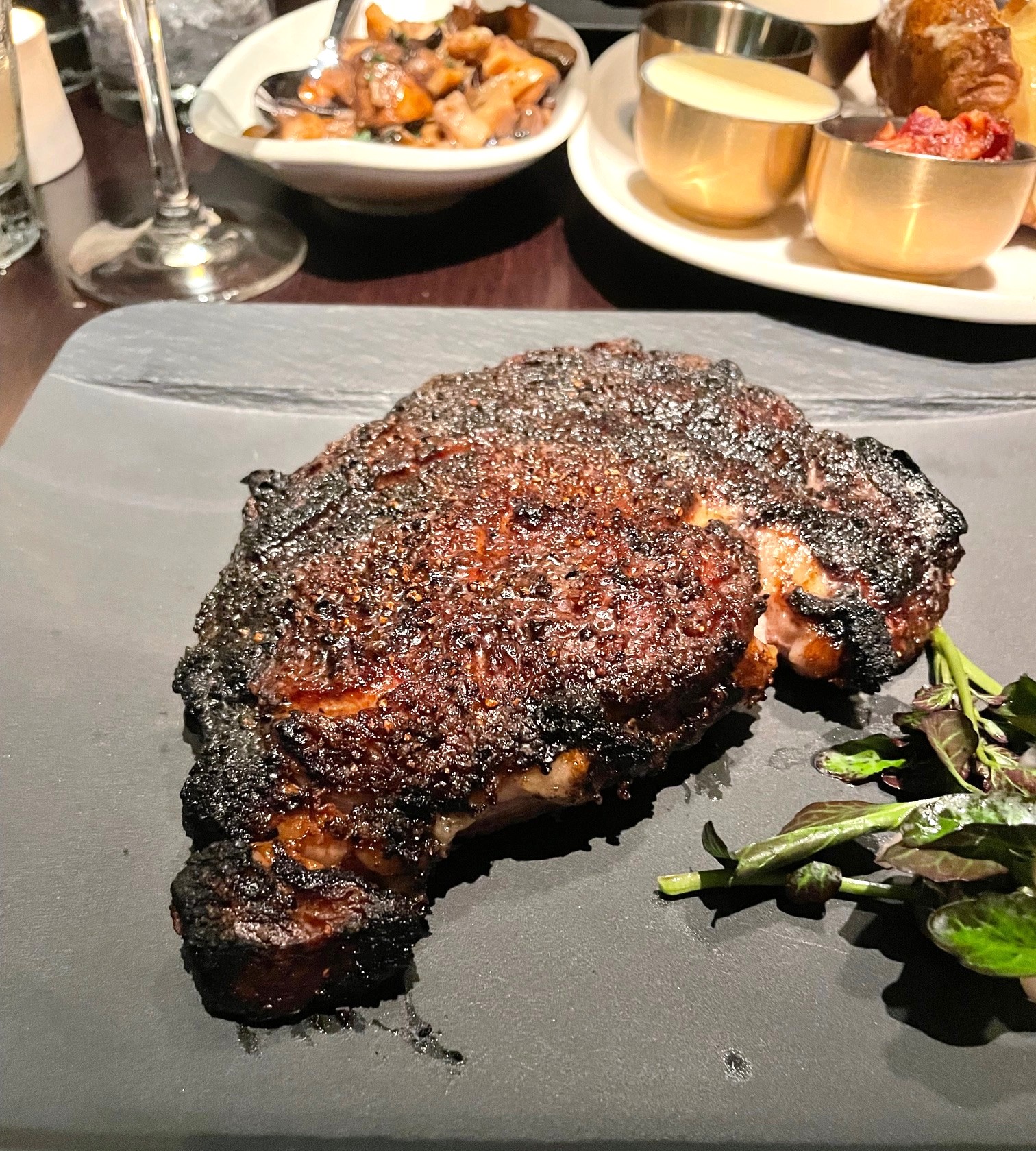 Be sure to save room for James Beard award-winning restaurateur Stephen Starr’s signature steaks that range from a tender 8-ounce filet to a flavor filled 18-ounce Prime dry-aged bone-in New York strip. The well marbled and perfectly seared Prime dry-aged ribeye was the declared winner of the table.
