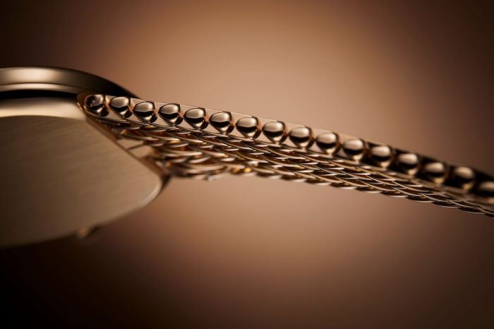 Patek Philippe explains that the new bracelet is the result of fifteen years of work. It is made of 18-karat hand-polished rose gold and has a new, patented construction of 363 parts, including more than 300 links, assembled manually.