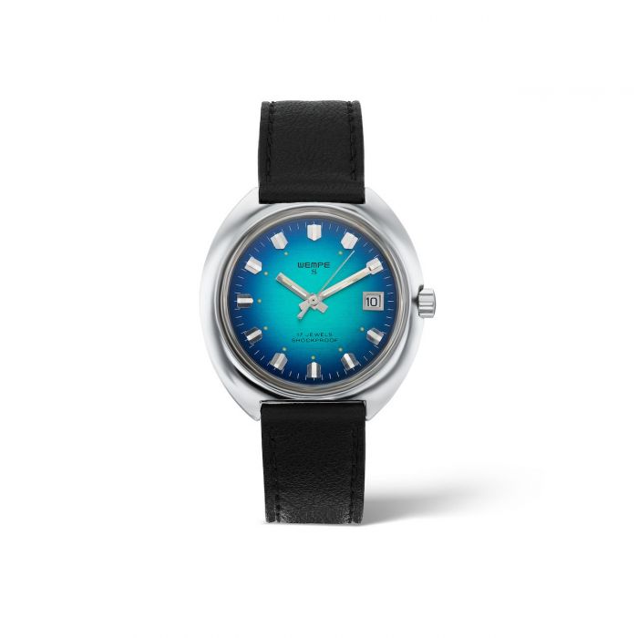 Wempe Vintage stainless steel, antimagnetic wristwatch with blue-green center gradient dial.