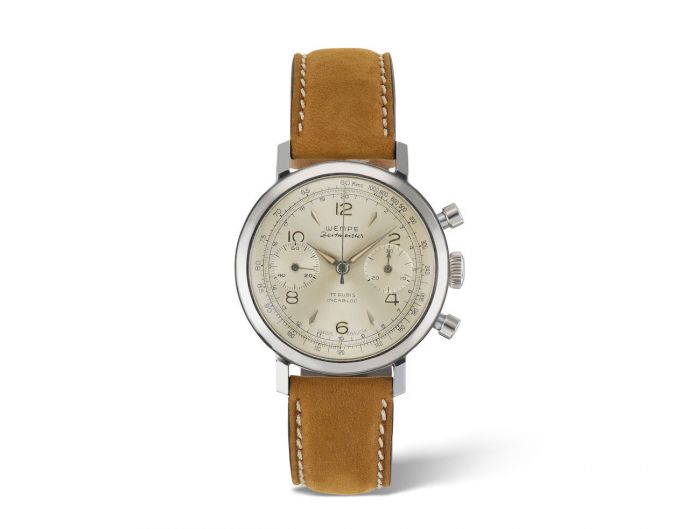 Wempe Vintage Zeitmeister stainless steel manual chronograph with silver dial.